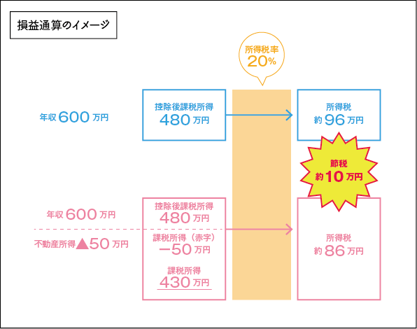 簡単に言えば、不動産投資で出た赤字を、本業の給与所得と相殺できる仕組みのこと。