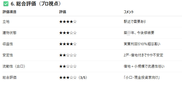 ⑥総合評価(プロ視点)