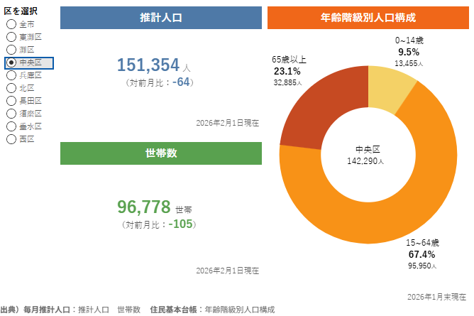 人口は市全体で減少傾向にあり、数年前に150万人を切りました。